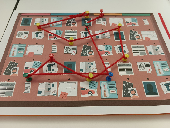 Ese pequeño cambio hizo que todo el juego cobrara una nueva dimensión. Decidí ambientarlo en la década de los 70, con los Papeles del Pentágono y el Watergate de fondo. Y, en ese momento, creé la versión “definitiva” del tablero personal de investigación.