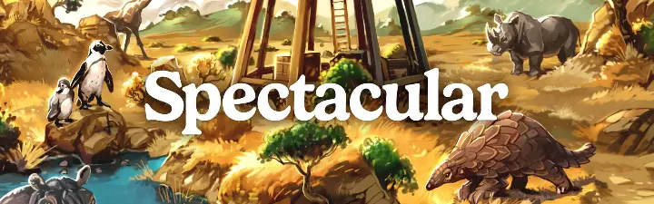 Spectacular destaca también por su presentación visual. Las ilustraciones de Gjermund Bohne dan vida a cada hábitat con una elegancia sobria, y los componentes (dados de colores, losetas con animales, tableros personales asimétricos) logran que el conjunto sea tan agradable de mirar como de jugar.