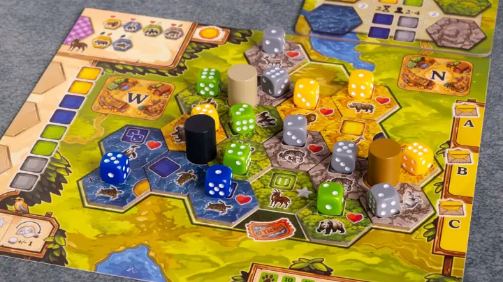 Además, podrás construir torres de observación, que te darán puntos extra por los tres dados adyacentes y que son el único lugar donde podrás colocar los 6. Y, claro, también deberás buscar diversidad de especies: cuantos más tipos distintos tengas, más puntos obtendrás.