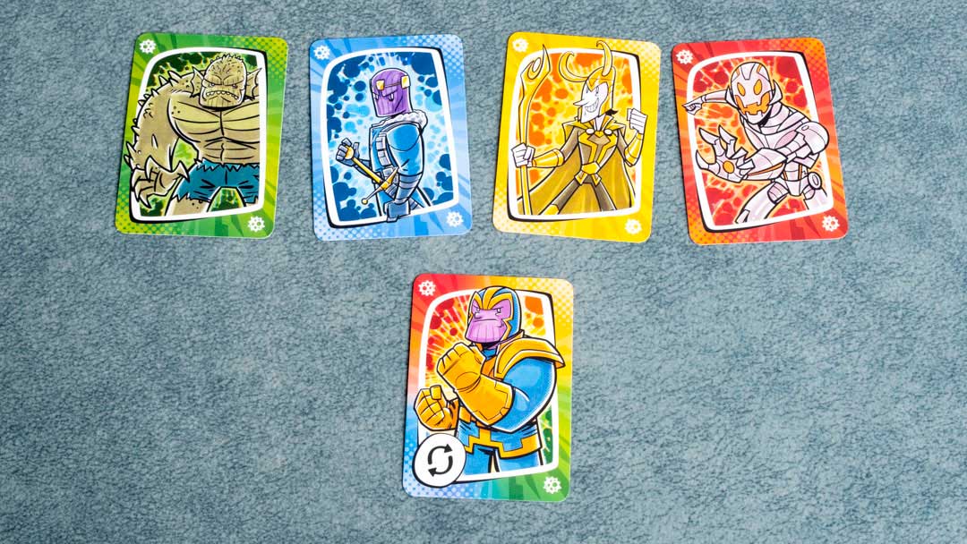 Y también está Thanos. No lleva el Guantelete del Infinito, porque éste tiene carta en el juego para él solo y, como en el Universo Marvel, debes decidir si utilizarla o no, ya que es una carta tan poderosa como indiscriminada.