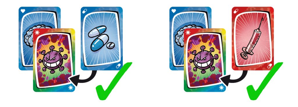 No, para eliminar un virus, necesitas usar una medicina de su mismo color (o una multicolor). Del mismo modo, para eliminar una medicina, necesitas un virus de su mismo color.
